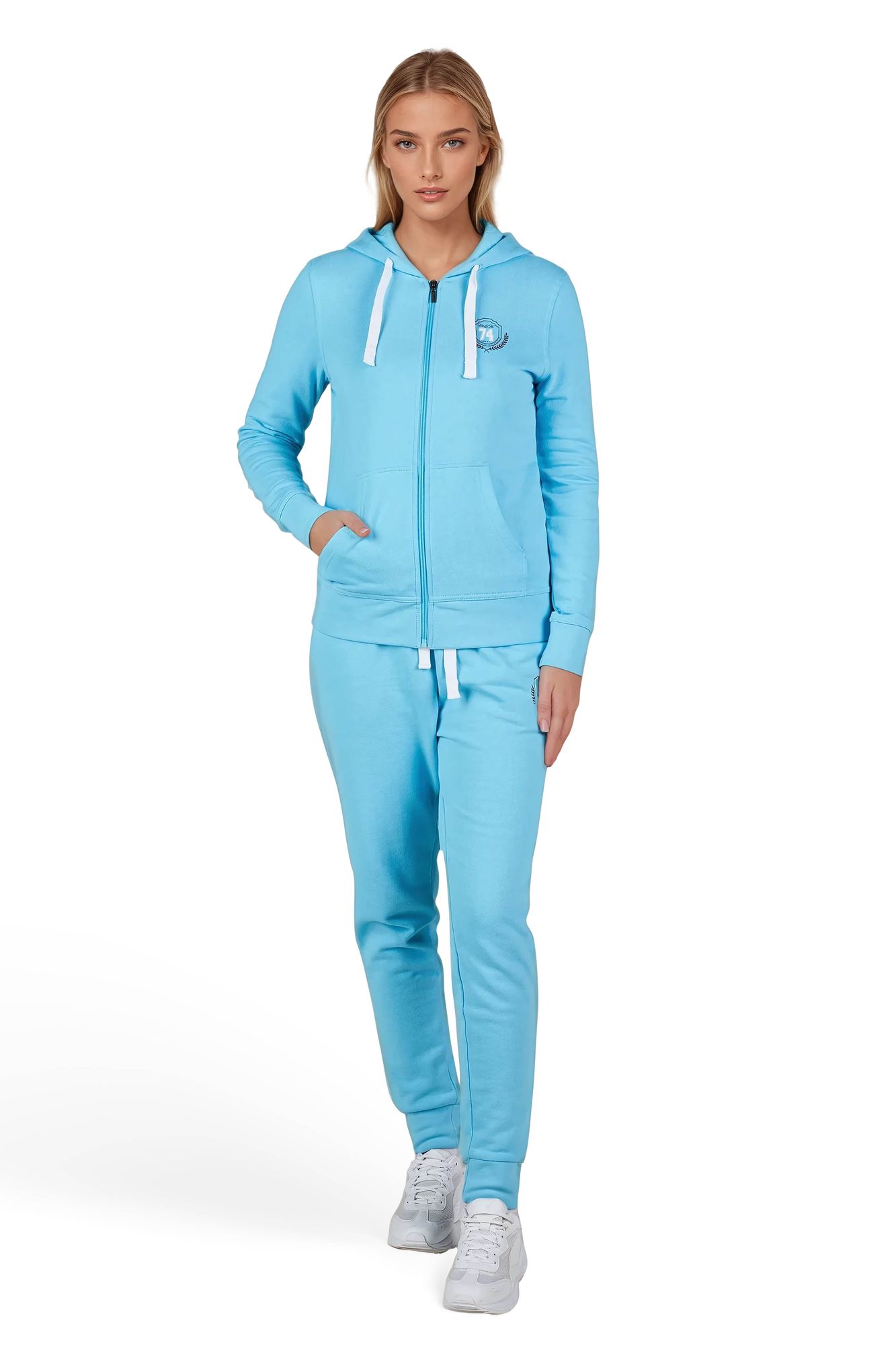 Das schlichte Design wird durch dezente Details wie die weißen Kordeln, den praktischen Reißverschluss, und das ERA & ME Brust-Logo mit „74 College Style“ aufgelockert. Zwei aufgesetzte Taschen sorgen für Funktionalität und runden den Look ab.
