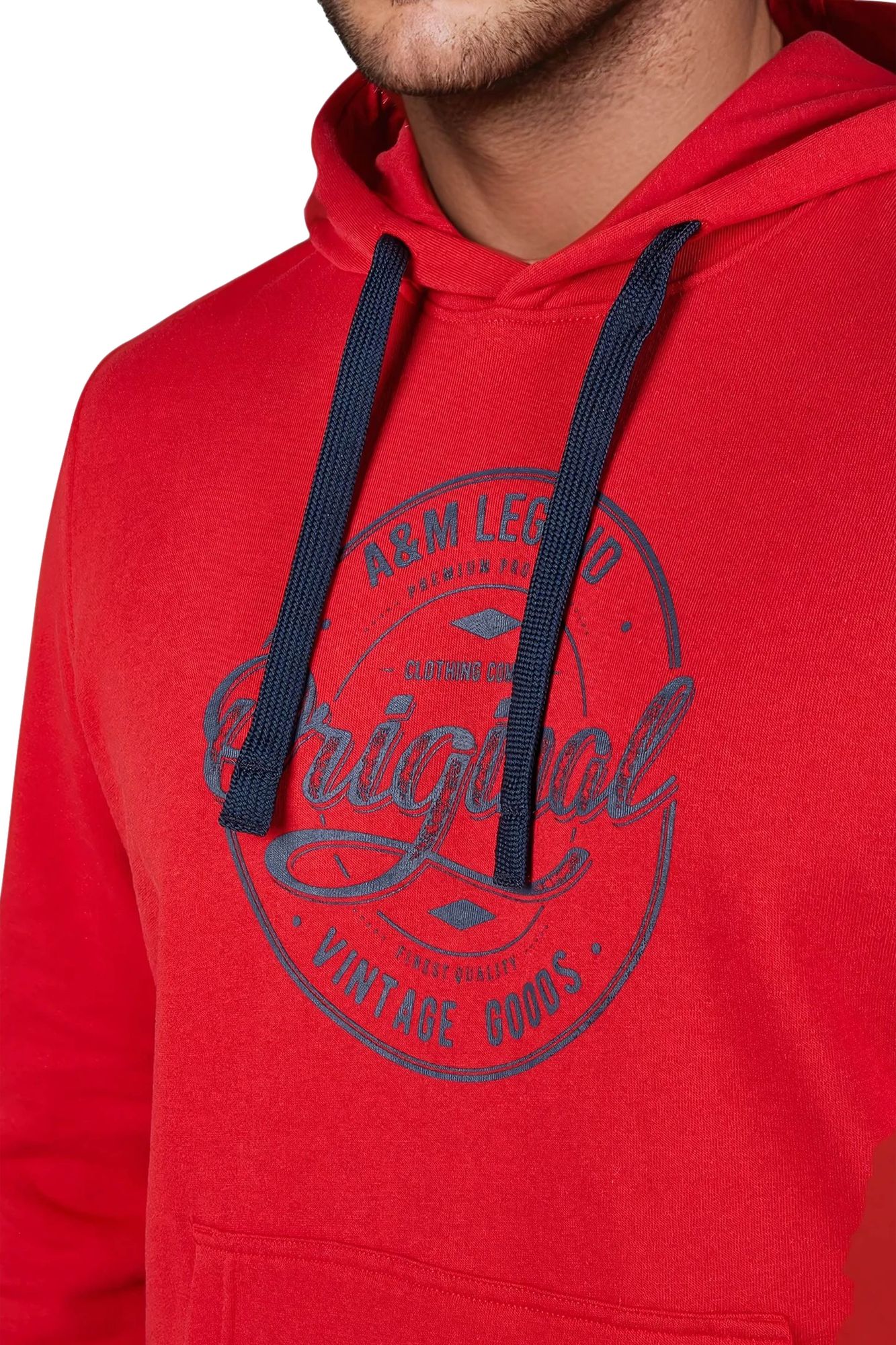 Das 260 GSM gebürstete Material aus 60 % Baumwolle und 40 % Polyester bietet eine weiche Innenseite, optimalen Sitz und hohe Formstabilität. Die Kapuze mit Kordelzug, die praktische Kängurutasche und der auffällige Frontprint mit „AM Legend Original Vintage Goods“ machen den Hoodie zu einem echten Hingucker.